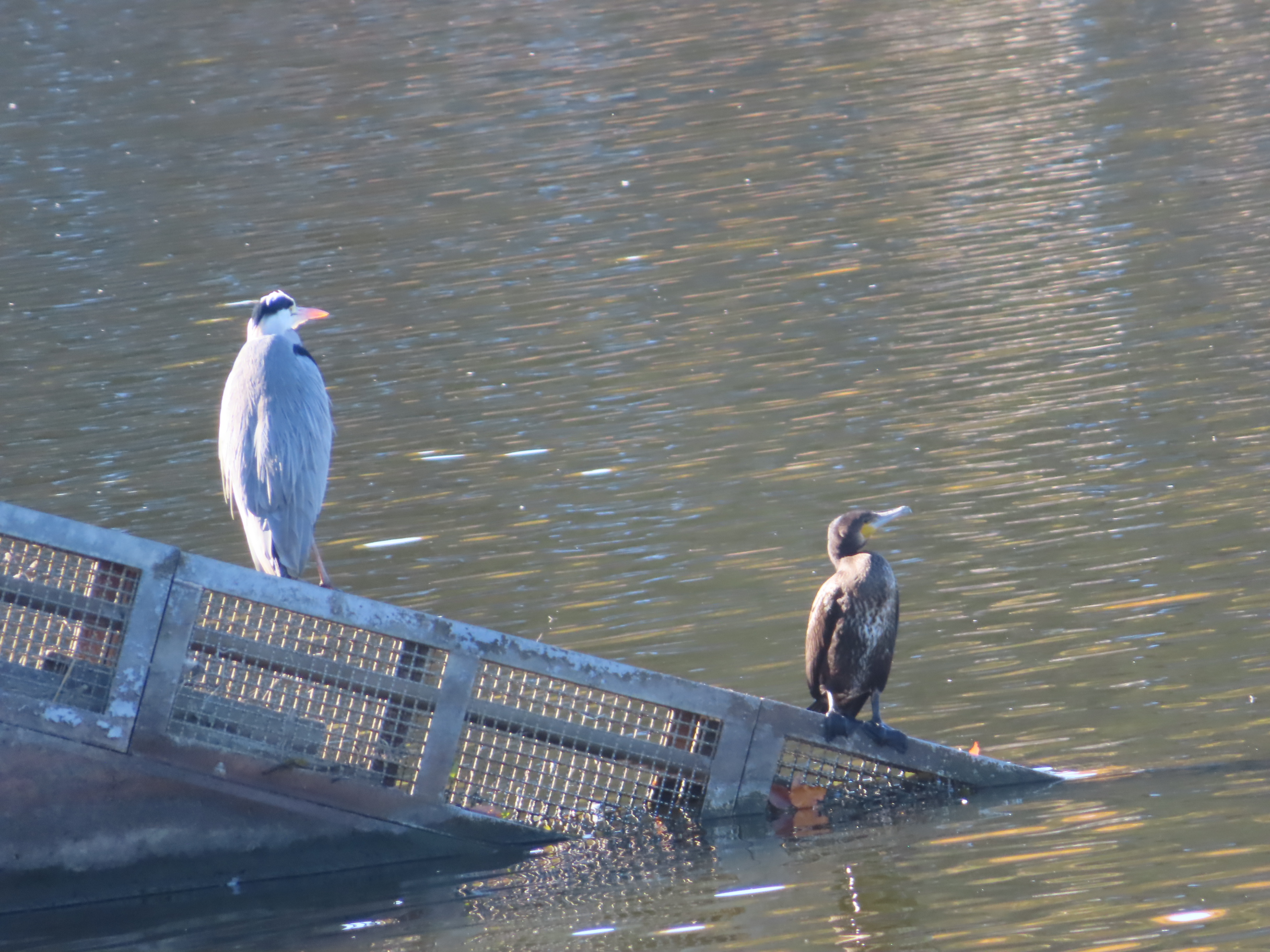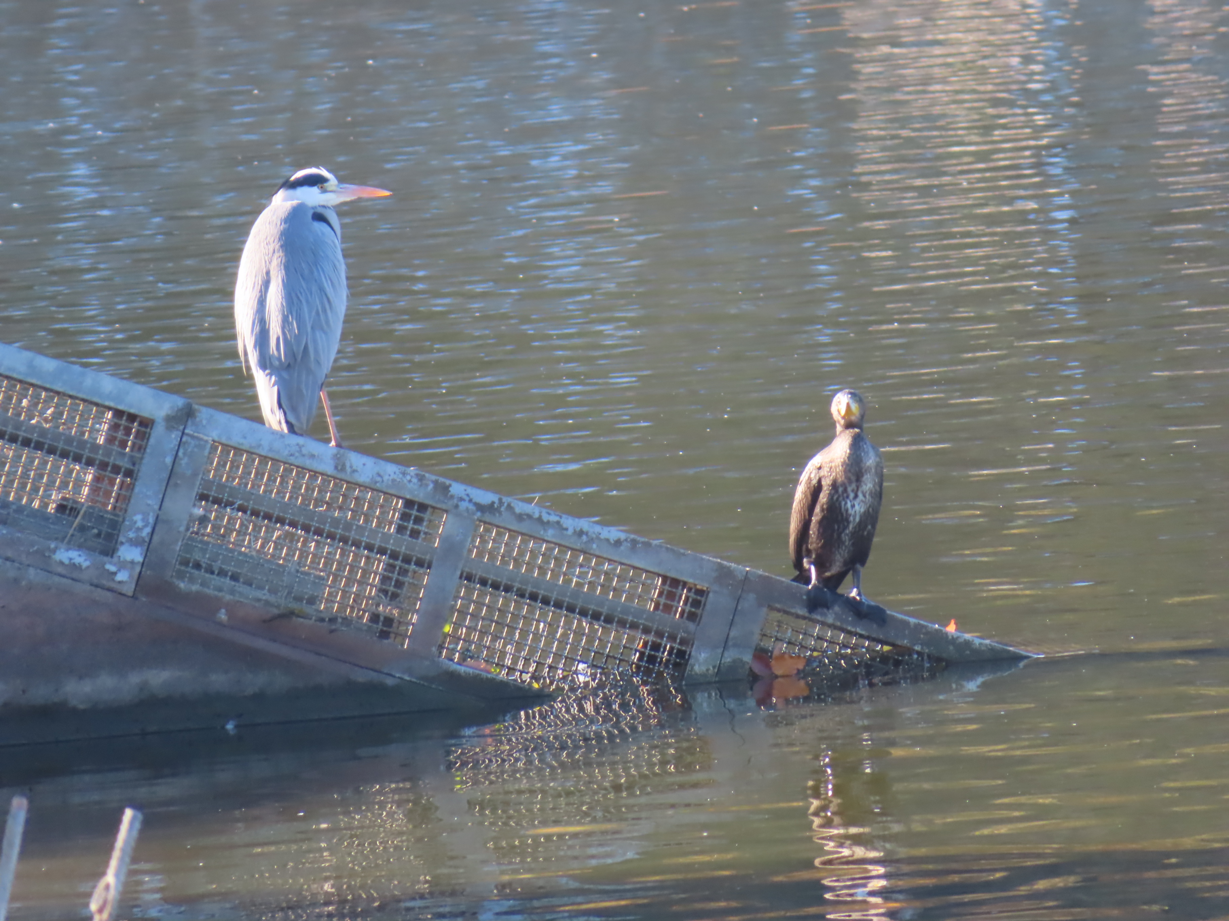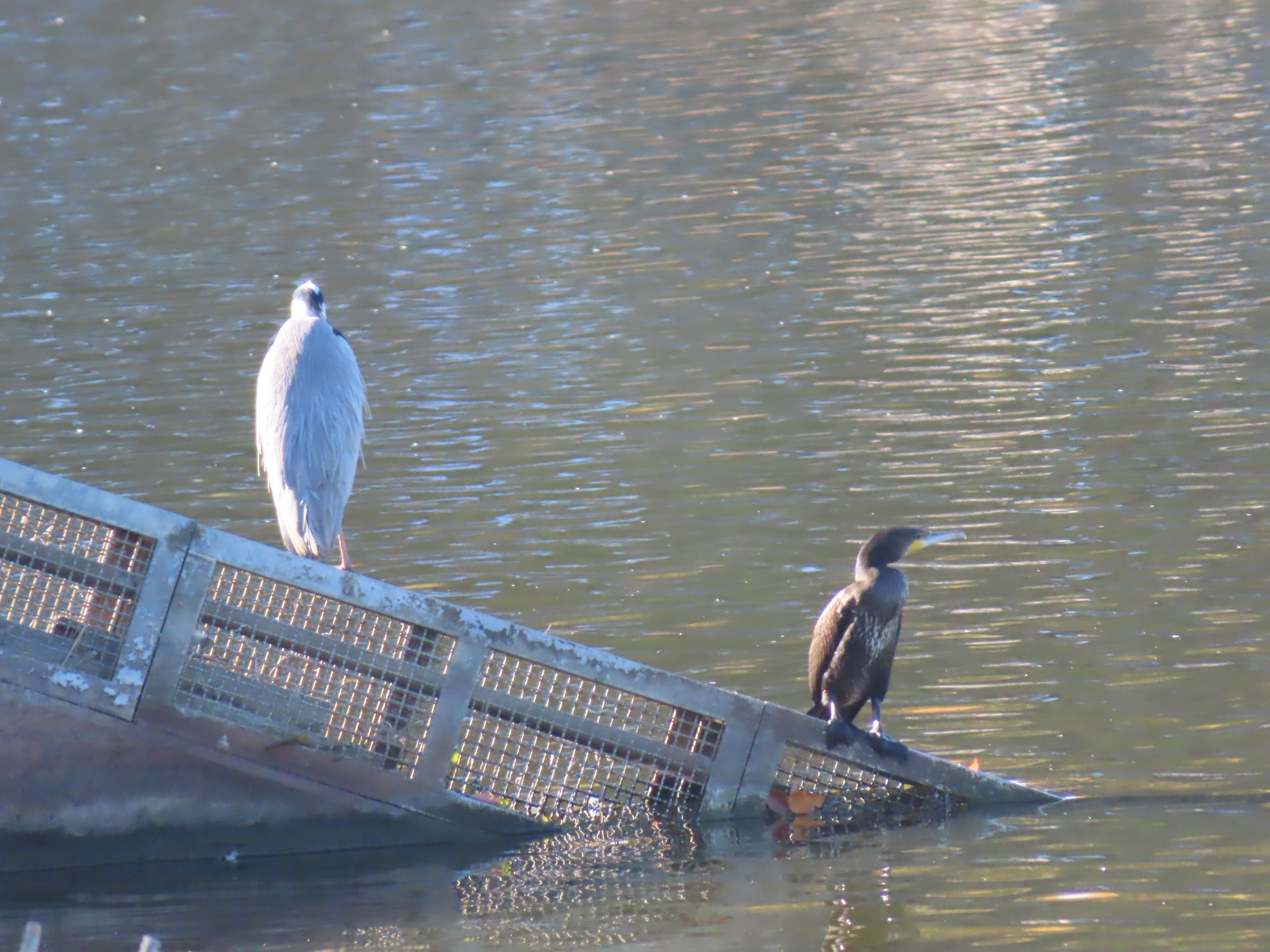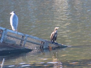 「アオサギとカワウ」を発見!