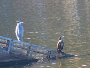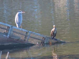 アオサギとカワウ