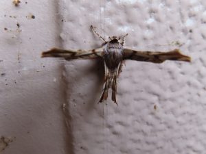蛾 オカモトトゲエダシャク 2026年2月16日 winc コメントをどうぞ きょうの午後、階段の壁に変わった蛾のようなものがいた・・ 帰宅後、まだ同じ所にいたので (≧[◎]oパチリ! トリバガか?と思った が、 調べたら違ってた~(^^;) 「オカモトトゲエダシャク」だった! 櫛形の触覚があったので♂のようだ・・ (一枚目の写真の右脇にチラッと見えてる) 初見の蛾~(^^♪ 幼虫の食草であるケヤキやサクラの葉は 近くに豊富にあるので 納得!うん、うん(=^_^=)